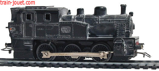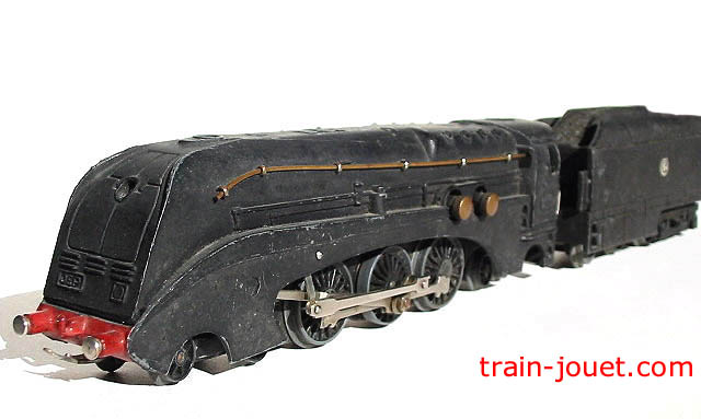 Motrice type 232-R + tender. Prototype Nord, Métal moulé, Alimentation 20v alternatif. Noire. (1948-1951) 31 cms. Réf 5635 | Motrice type 232-R + tender. Prototype Nord, Métal moulé, Moteur AP5. Verte à filets argent. (1952-1964) 31 cms. Réf 6005 |