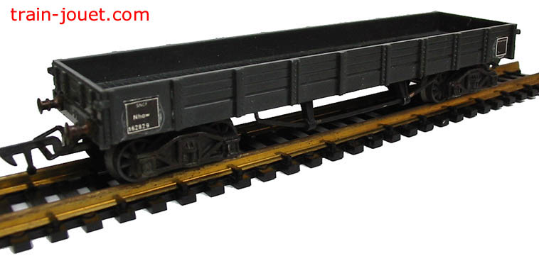 Wagon tombereau en plastique gris, bogies. 16